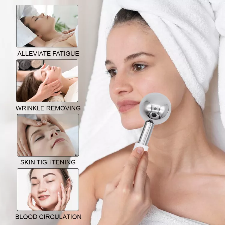 ముఖం కోసం ఈ మంచు గ్లోబ్స్ కొల్లాజెన్, మృదువైన చక్కటి గీతలు మరియు కుంగిపోయే చర్మాన్ని బిగించడానికి శీతలీకరణ మసాజ్ను అందిస్తాయి. ద్రవాన్ని హరించడానికి ఉబ్బిన కళ్ళ కోసం కంటి రోలర్గా ఉపయోగించండి, చీకటి వృత్తాలను తగ్గించండి మరియు ప్రకాశవంతమైన గ్లో కోసం రంధ్రాలను అన్లాగ్ చేయండి. సీరమ్లతో జత చేయండి (ఫేషియల్ టూల్ బూస్టర్గా) లేదా శోషరస పారుదల కోసం సోలోను ఉపయోగించండి. పోస్ట్-పార్టీ గ్లో టు మార్నింగ్ రేడియన్స్!