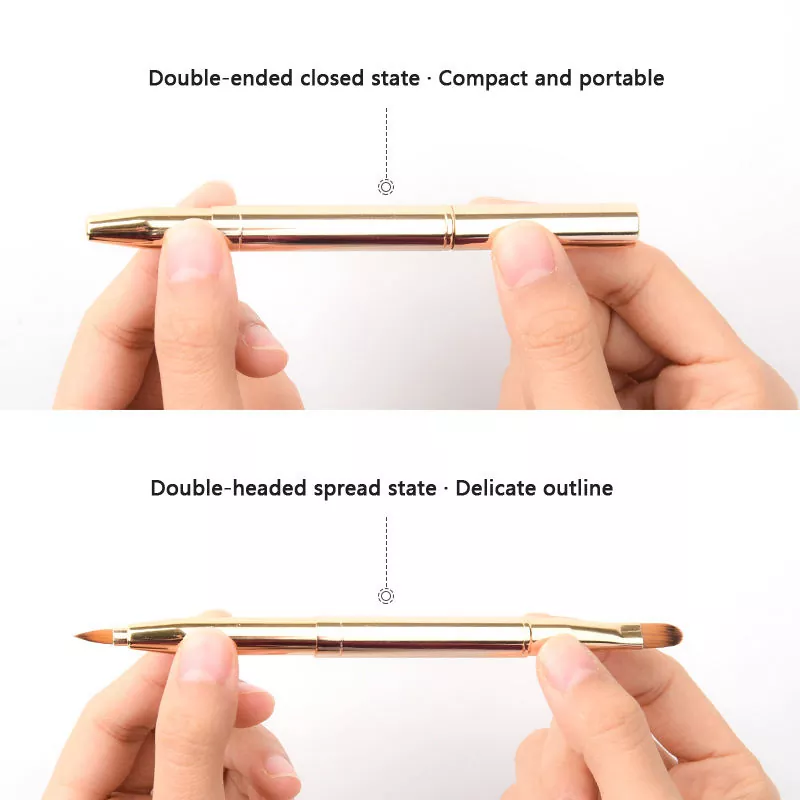 లిప్ సింగిల్ మేకప్ బ్రష్లు మృదువైన సింథటిక్ బ్రిస్టల్స్తో స్థిరమైన డ్యూయల్-ఎండ్ డిజైన్ను కలిగి ఉంటాయి. పెదవి రేఖలను రూపుమాపడానికి ఖచ్చితమైన చిట్కాను ఉపయోగించండి మరియు మృదువైన, దీర్ఘకాలం ఉండే పెదవి రూపానికి రంగును పూరించడానికి ఫ్లాట్ బ్రష్ను ఉపయోగించండి. ప్రయాణంలో టచ్-అప్ల కోసం కాంపాక్ట్ మరియు పోర్టబుల్.
