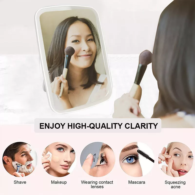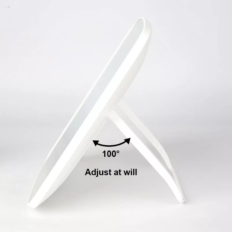 ఈ టేబుల్టాప్ లెడ్ మేక్ అప్ మిర్రర్ విభిన్న మేకప్ దృశ్యాలకు సరిపోయేలా 3 సర్దుబాటు చేయగల లైట్ మోడ్లను (చల్లని, సహజమైన, వెచ్చగా) కలిగి ఉంది, ఖచ్చితమైన అప్లికేషన్ కోసం నిజమైన-జీవిత కాంతిని అందిస్తుంది. దీని 100° సర్దుబాటు చేయగల స్టాండ్ అనువైన వీక్షణ కోణాలను అనుమతిస్తుంది, అయితే స్లిమ్, తేలికైన డిజైన్ సులభమైన పోర్టబిలిటీని నిర్ధారిస్తుంది.